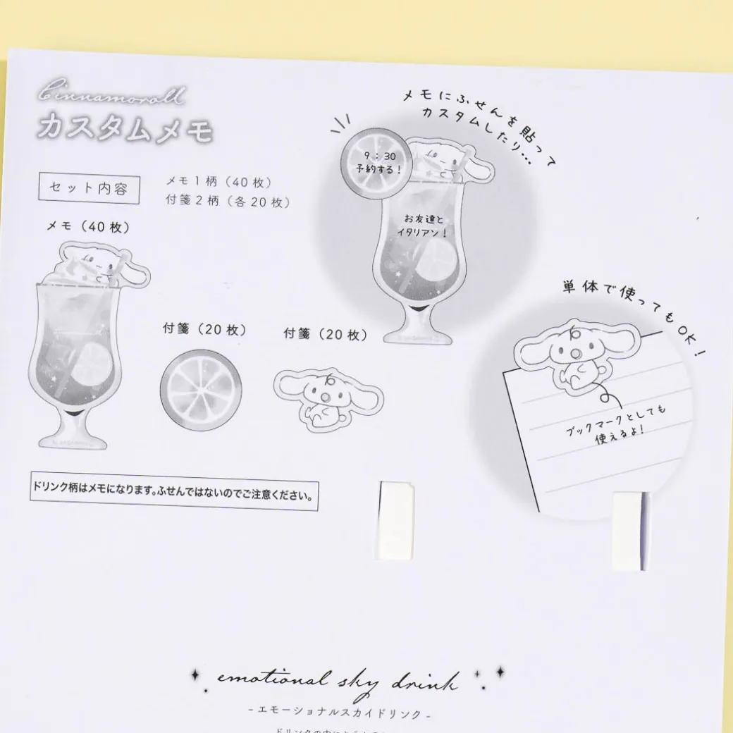 Write down important reminders using this super cute memo pad and sticky note set! It features Cinnamoroll and his bestie Milk playing with magical soda. Add it to your stationery collection!