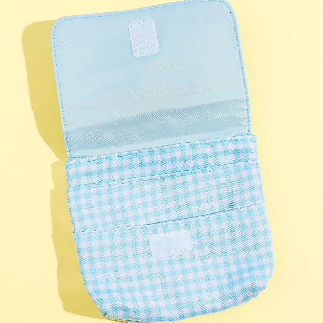 Bring your lip balm, mints, and other small essentials inside this cute sling bag that can also be used as a pocket pouch! It comes with special clips so you can easily attach it to your clothes. This shoulder bag is decorated with gingham patterns, bows, and kawaii prints of Cinnamoroll!