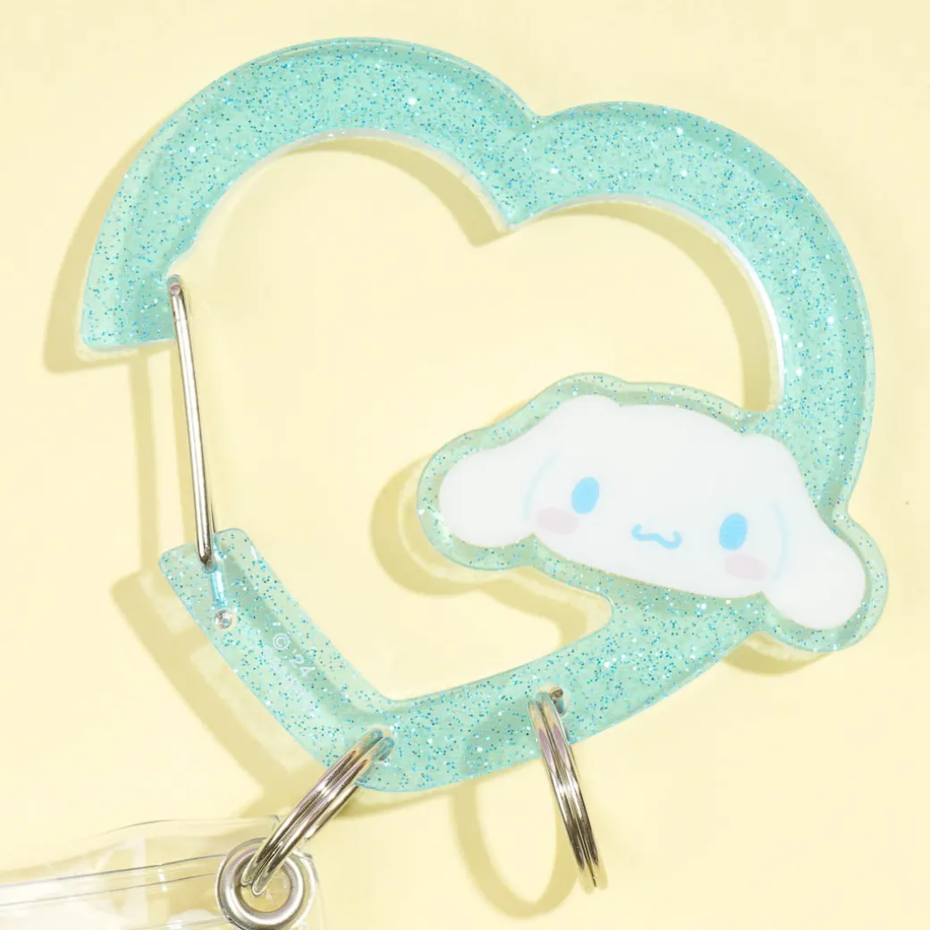 Store your favorite hairpins and clips inside this clear multi-case! This glittery pouch has a sky blue print of Cinnamoroll and a heart! The set also comes with a matching glittery sky blue heart-shaped Cinnamoroll acrylic carabiner with keyring. You can use it as a set or as separate pieces as well.