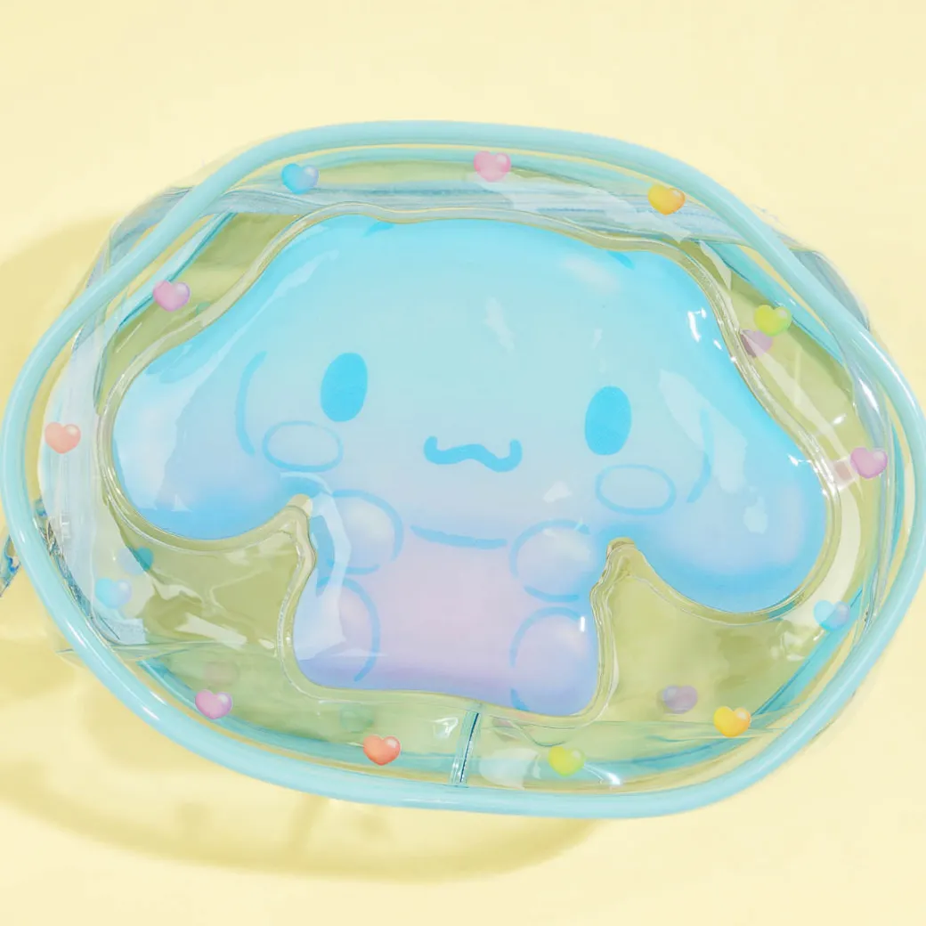 Use this super kawaii transparent pouch to store your jewelry and charms. This zippered pouch features a print of Cinnamoroll as a gummy bear! It comes from the Sanrio Gummy Candy series.