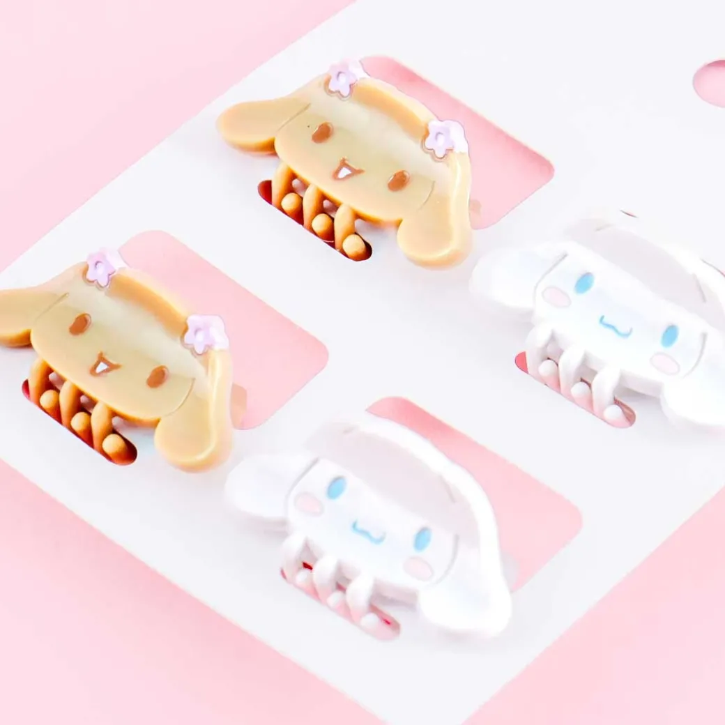- A super cute set of small hair clips shaped like Cinnamoroll and Mocha