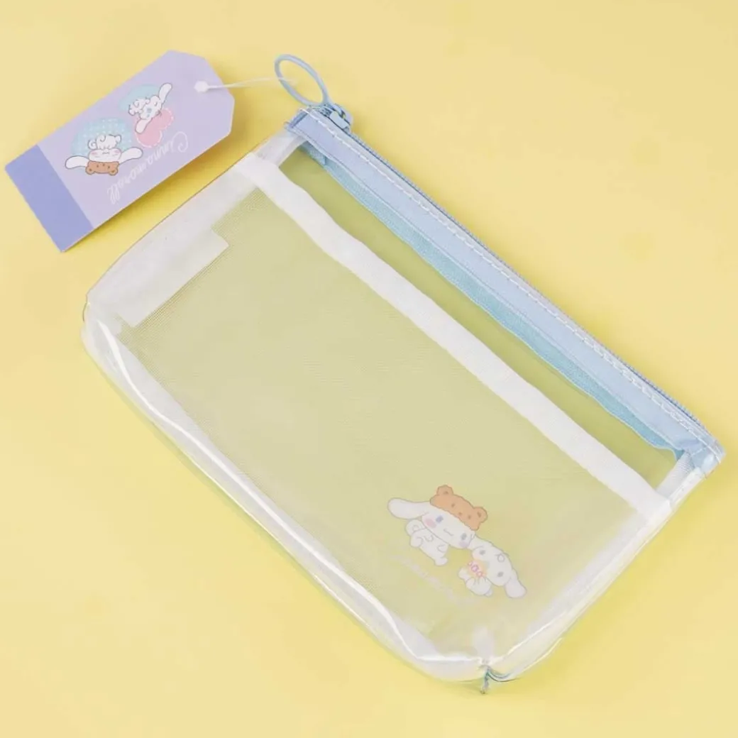 - A kawaii clear flat pen case illustrated with a small print of Cinnamoroll hanging out with Milk