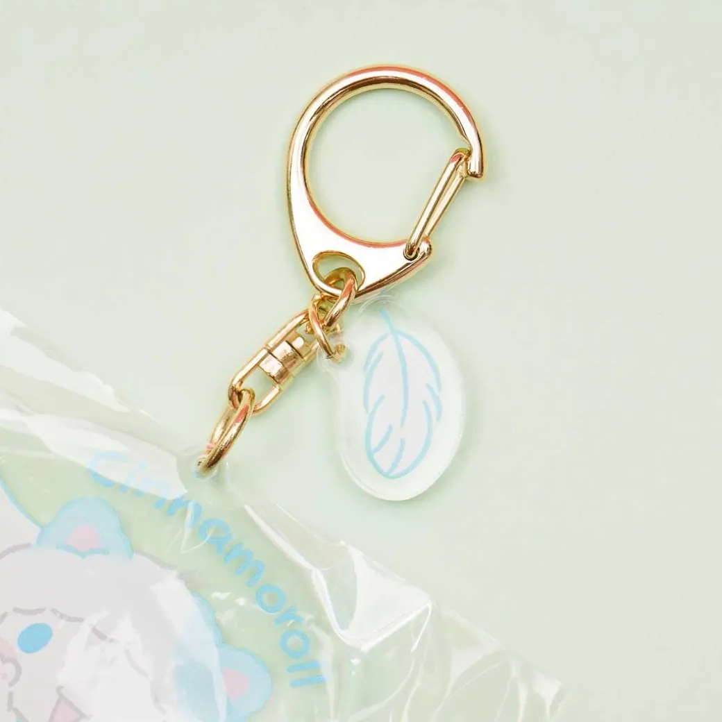 - A kawaii die-cut acrylic charm illustrated with Cinnamoroll wearing a cat onesie