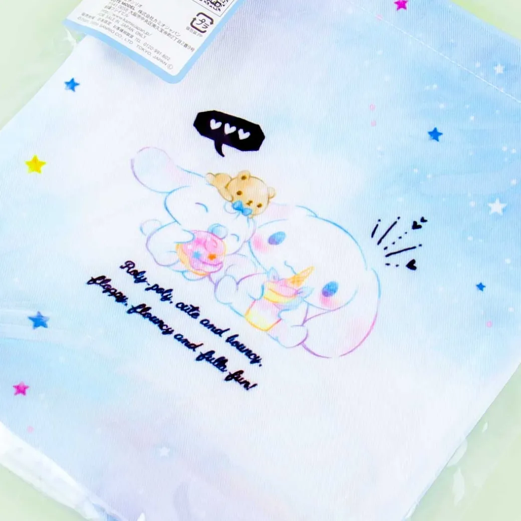 - A drawstring bag with illustrations of Cinnamoroll and sweet treats