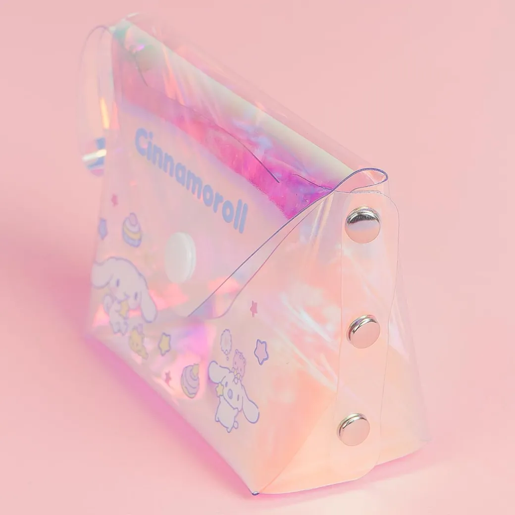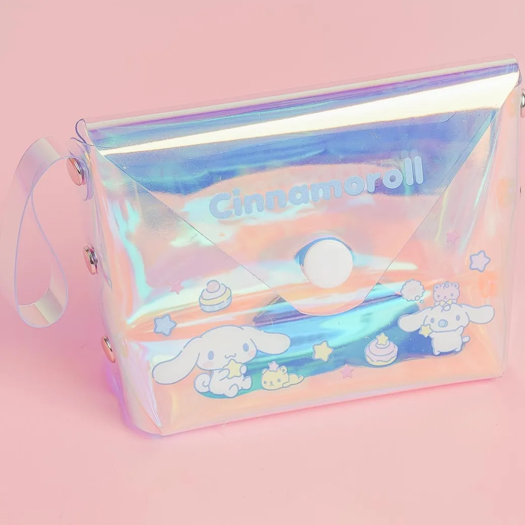 Use this kawaii mini button pouch to store sweets or small items! It features cute prints of Cinnamoroll with a multi-colored holographic background.
