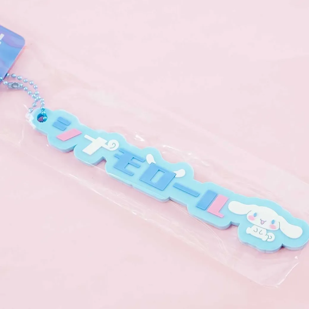 - A kawaii charm featuring Cinnamoroll and his name in Katakana