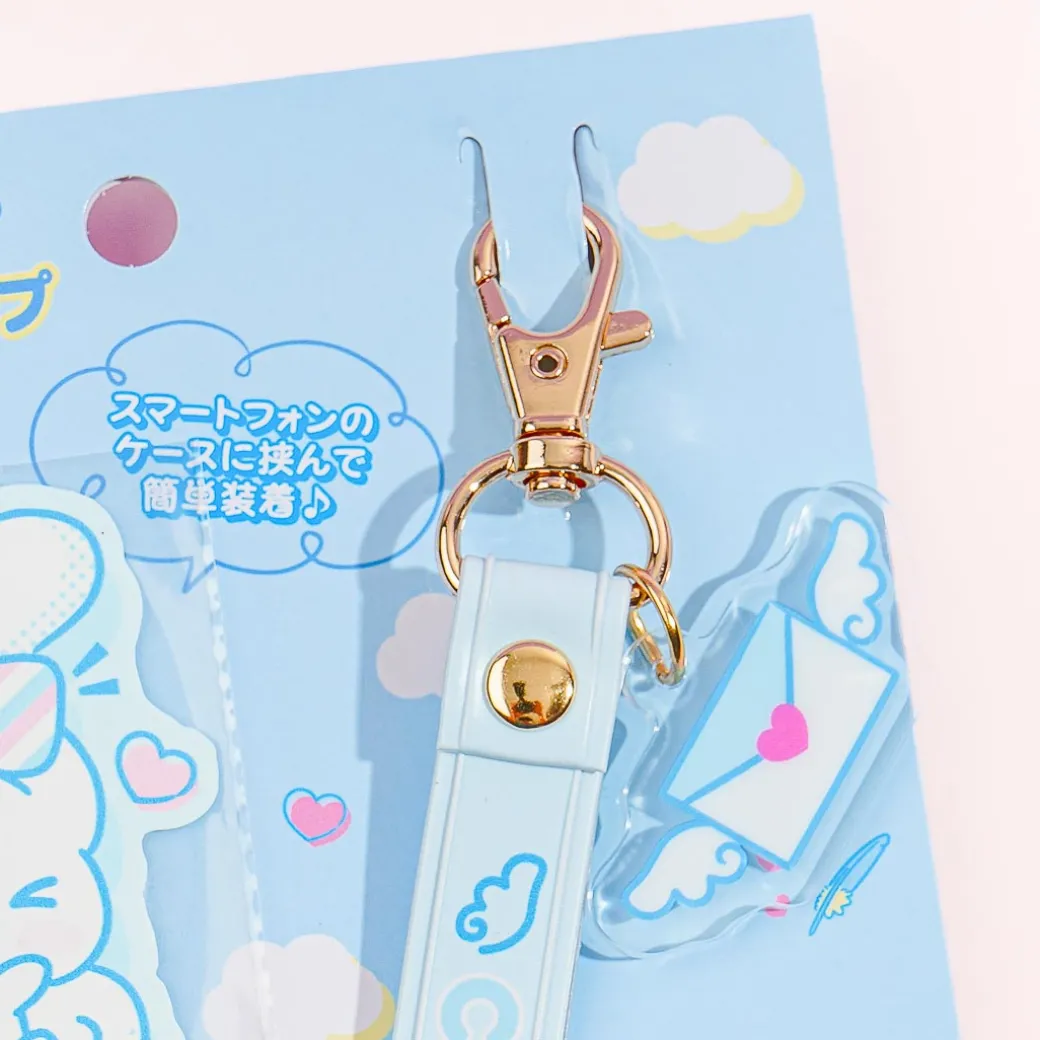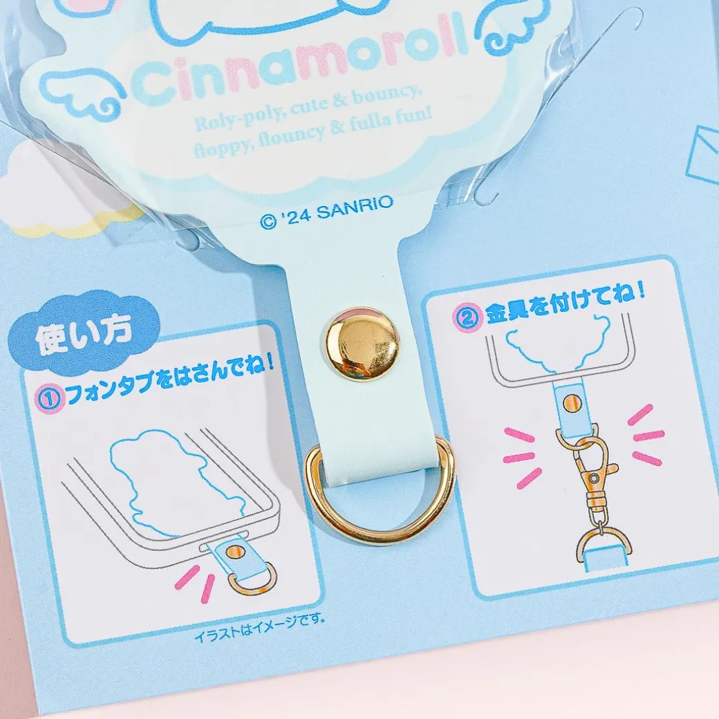 Add a dose of cuteness to your smartphone by using this super cute phone tab and strap set! It features a die-cut design with an illustration of a jumping Cinnamoroll and a love letter envelope with wings. Simply place the tab at the back of your phone case and don’t forget to connect it to the included strap so you can securely hold your phone!