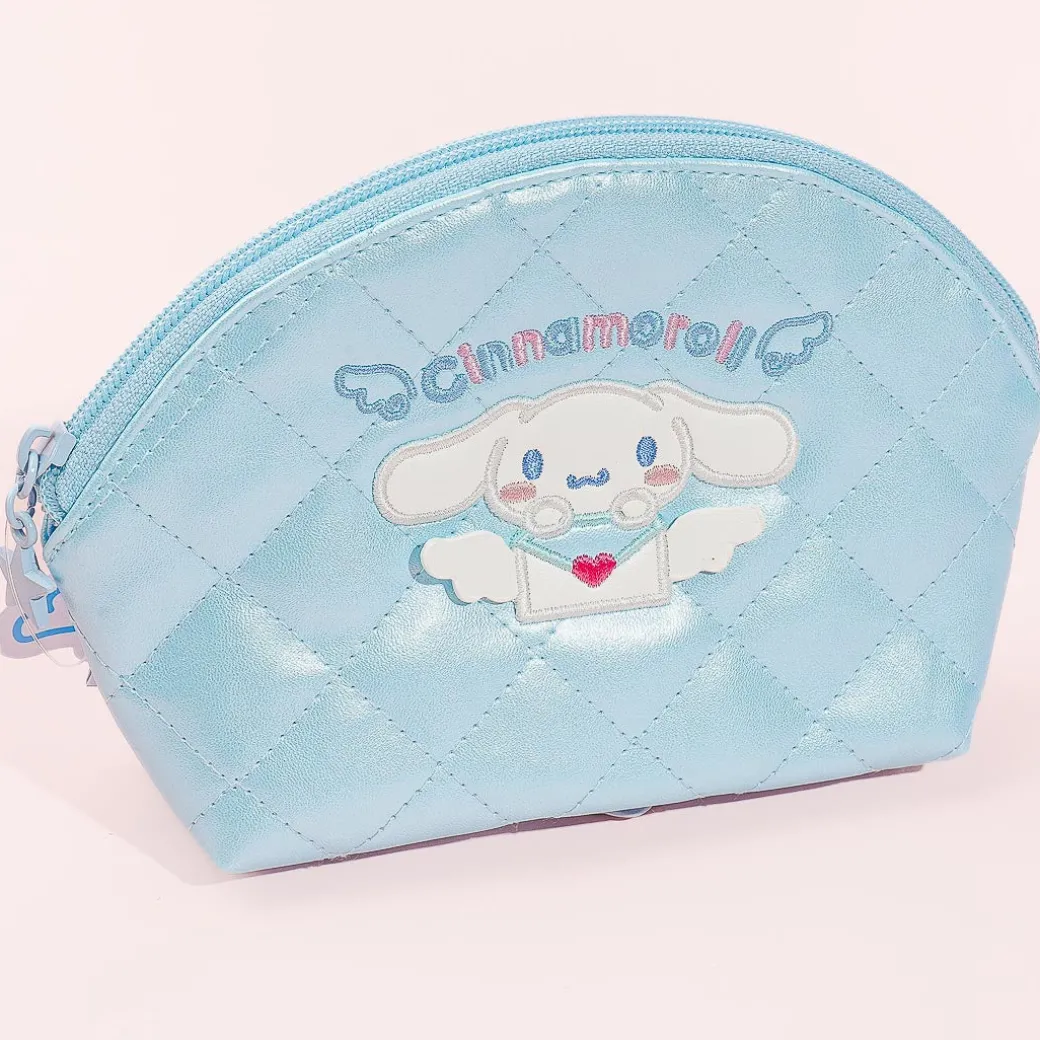 Keep your favorite skincare and beauty products inside this quilted pouch! It features an embroidery of Cinnamoroll and a letter envelope with wings at the front. You can also use this to organize your makeup brushes.