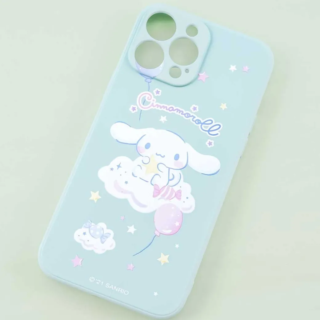 - A kawaii soft case for iPhone 13 Pro Max illustrated with Cinnamoroll on a cloud