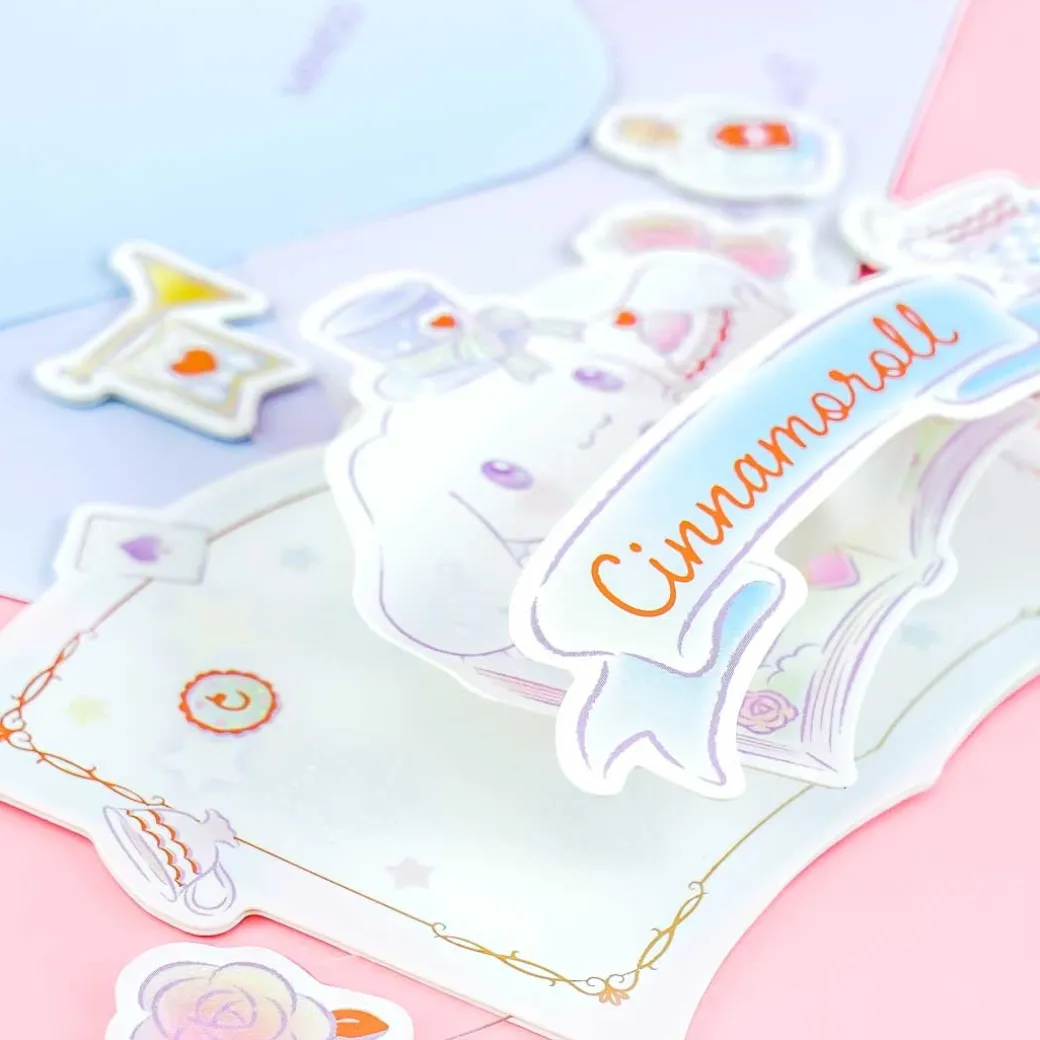 - A cute pop-up greeting card featuring Cinnamoroll having a tea party
