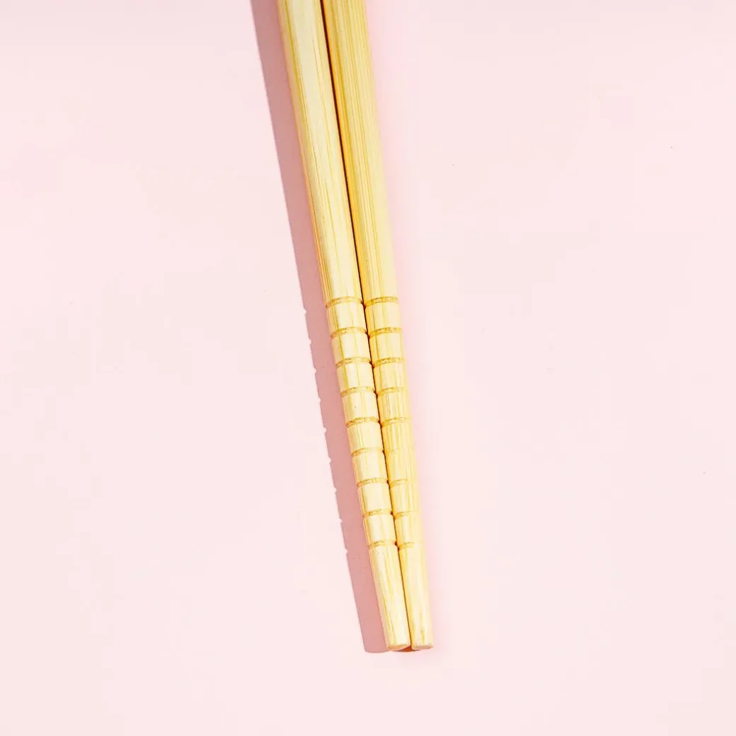 Eat your meals using this super cute pair of reusable bamboo chopsticks! It features a kawaii illustration of Cinnamoroll and his friend Milk surrounded with lavender flowers.