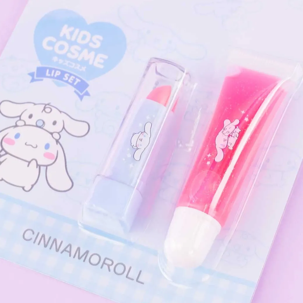 - A kawaii kit consisting of a lipstick and gloss featuring Cinnamoroll and Milk