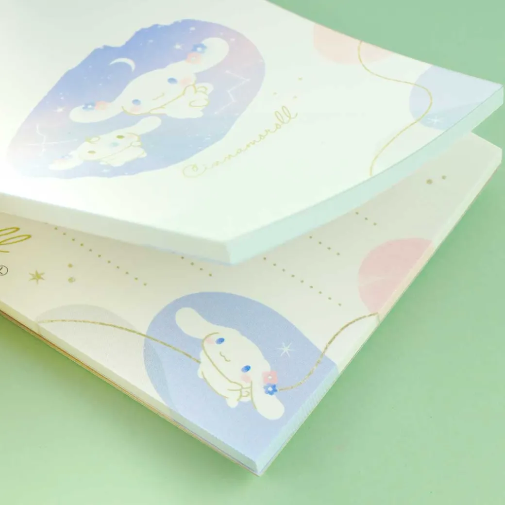 Use this super cute memo pad to jot down quick notes! Its white cover is decorated with illustrations of Cinnamoroll and Milk playing across the night sky.