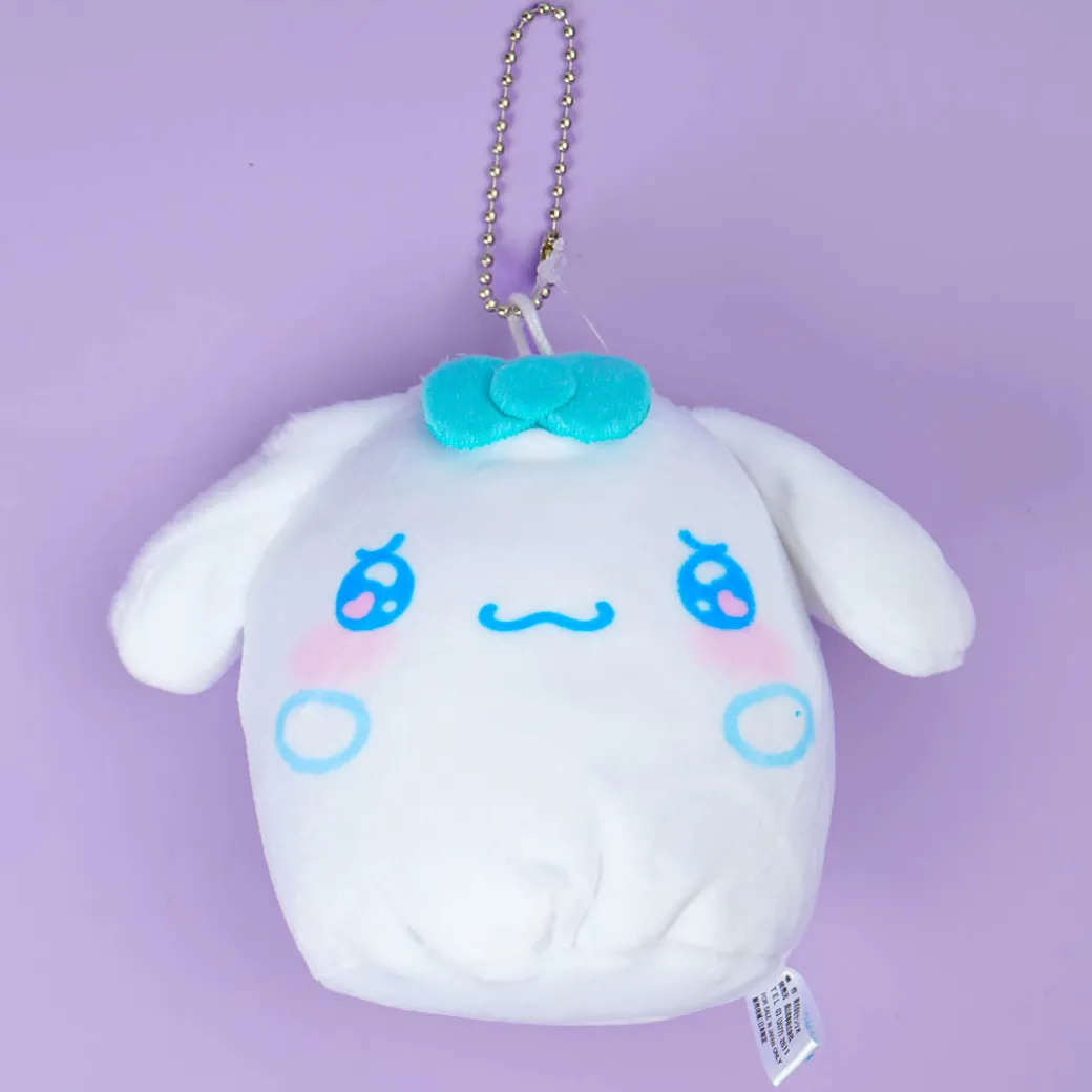 This Cinnamoroll plushie looks so kawaii with its medium-sized round body and super-expressive eyes. Attach this soft and squishy toy to your bag using the ball chain and have fun playing with it!