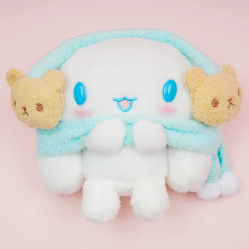 - A kawaii medium-sized Cinnamoroll plushie with bear ear mufflers