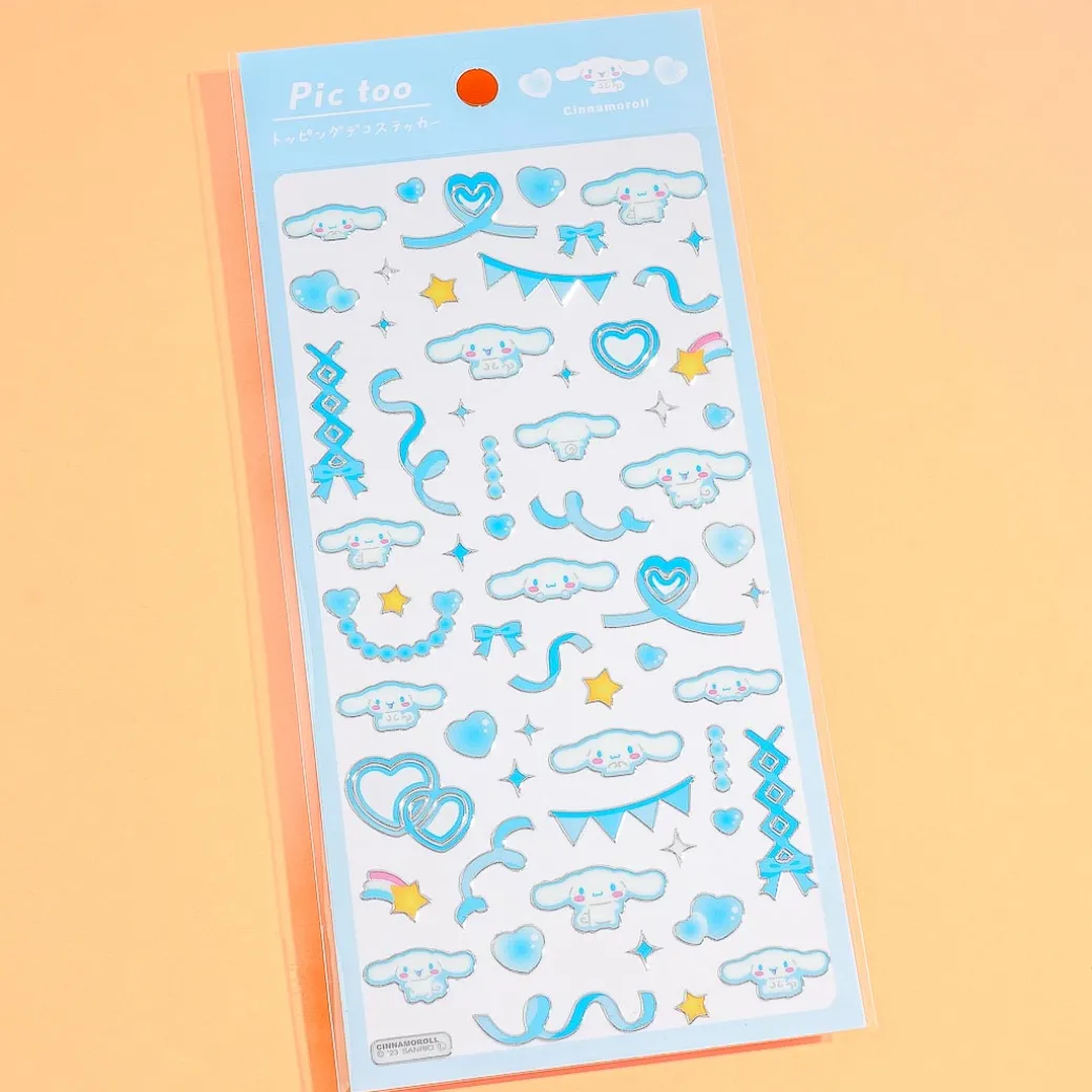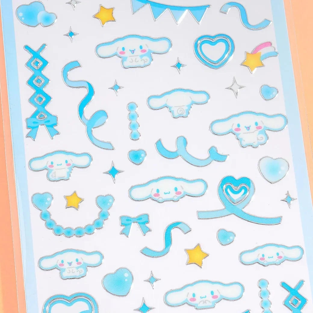 This sticker sheet features die-cut prints of Cinnamoroll and party ribbons! Use it to jazz up your boring notebooks. The stickers even have foil-stamped edges for a touch of sparkle.