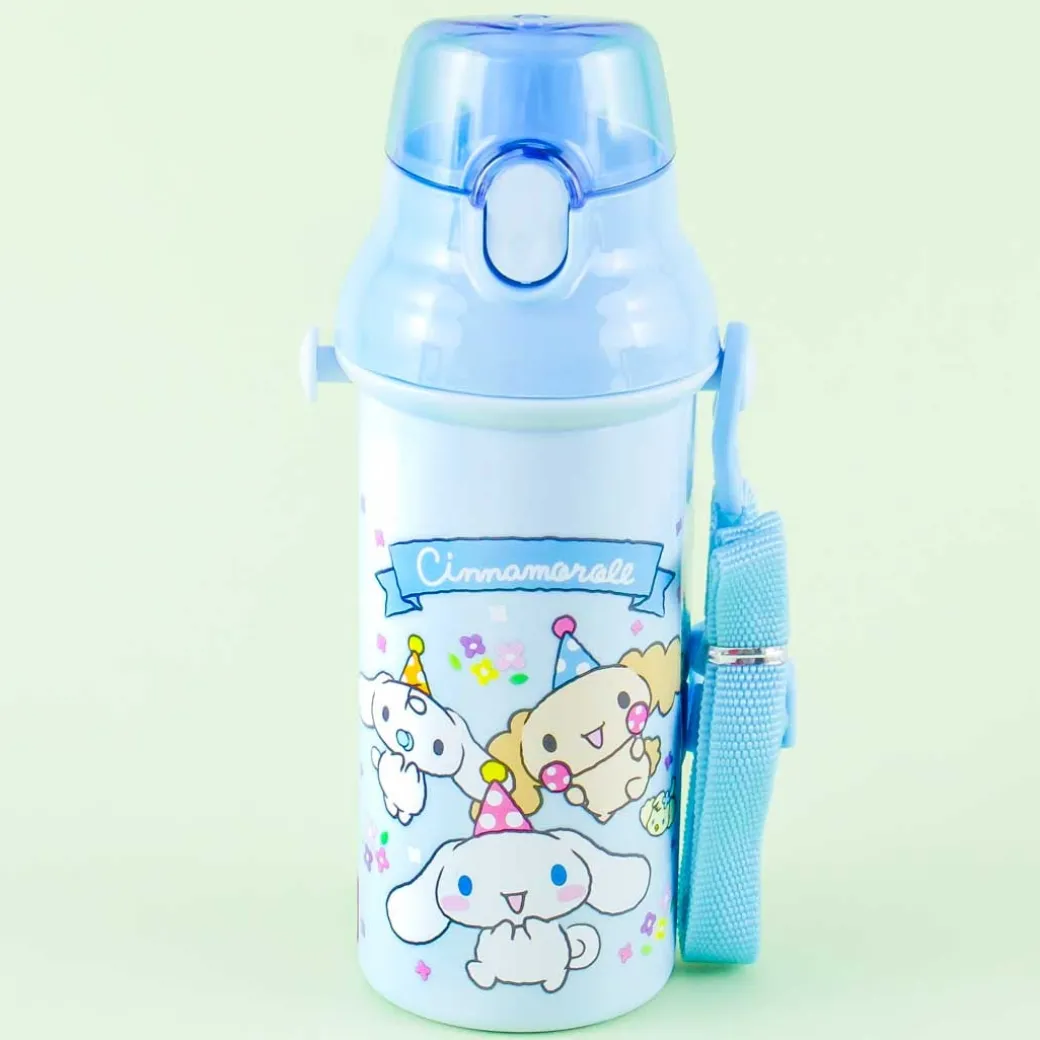 - A kawaii water bottle covered in prints of Cinnamoroll characters at a party