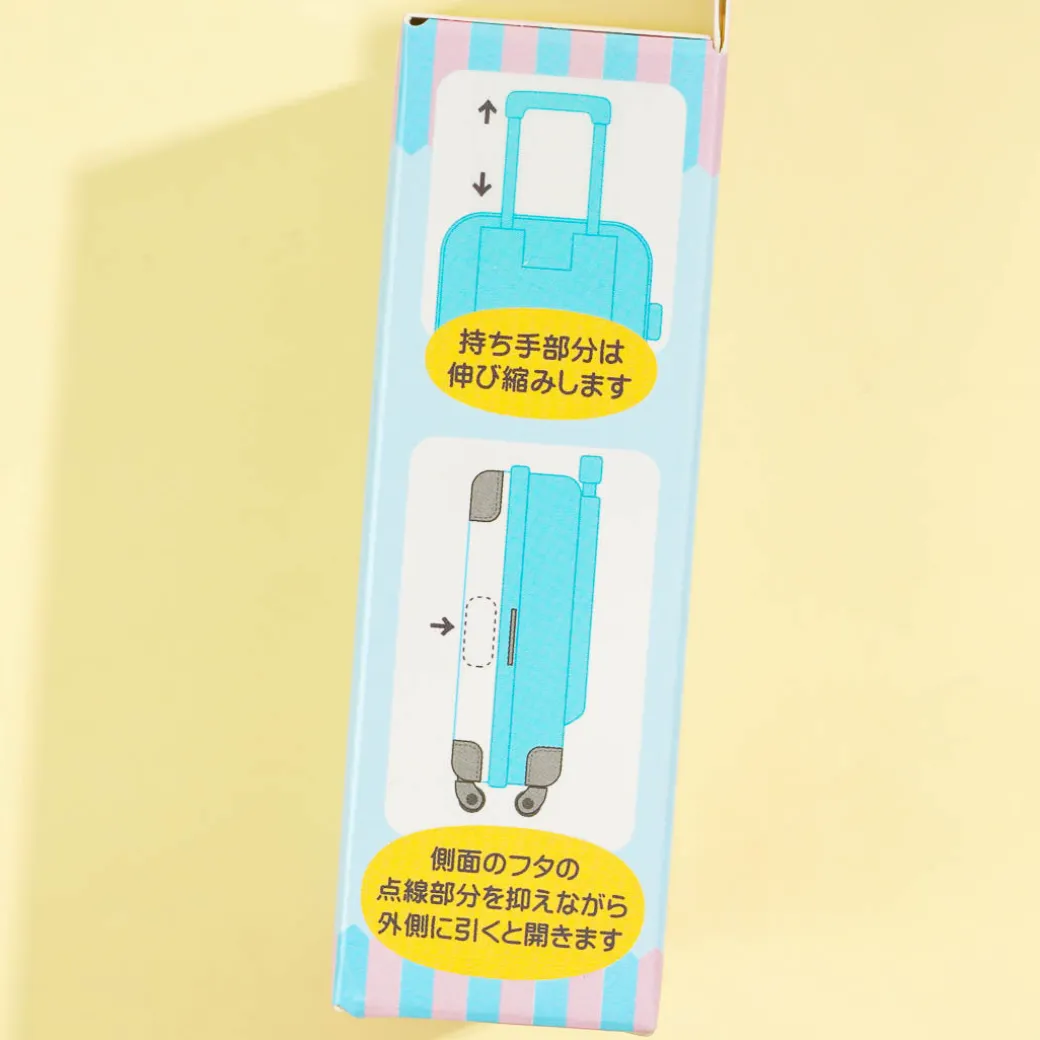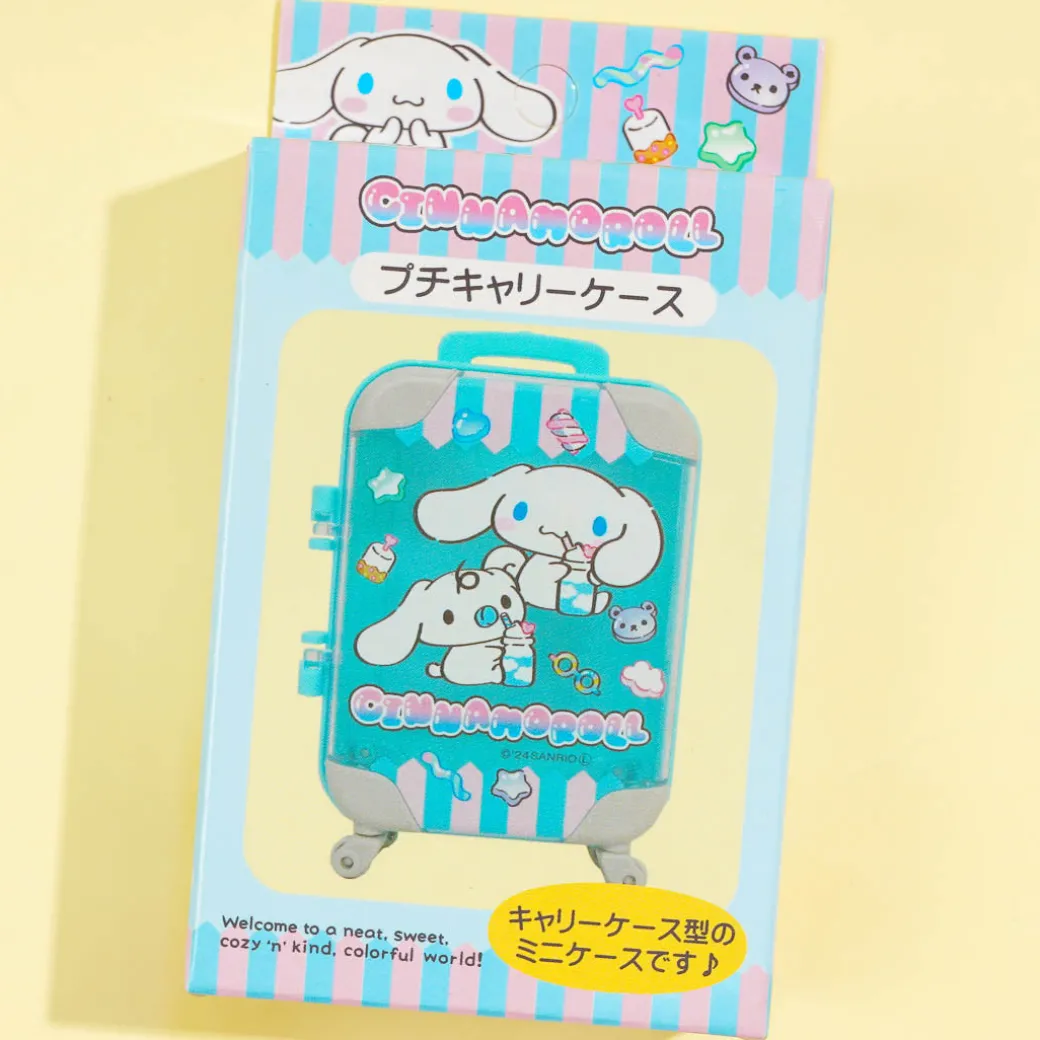 Use this super kawaii carry case desktop organizer to sort out small items like clips, pins, and more. It features prints of Cinnamoroll playing with his friend Milk! This luggage-shaped desktop organizer has an expandable handle and casters that rotate.