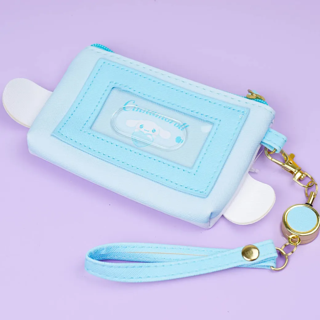 This kawaii pouch features Cinnamoroll’s pouty face and die-cut ears on the front. It includes a pass case on the back so you can use it while you travel!