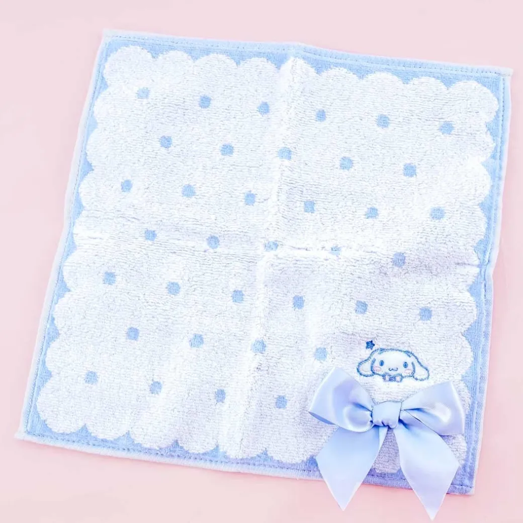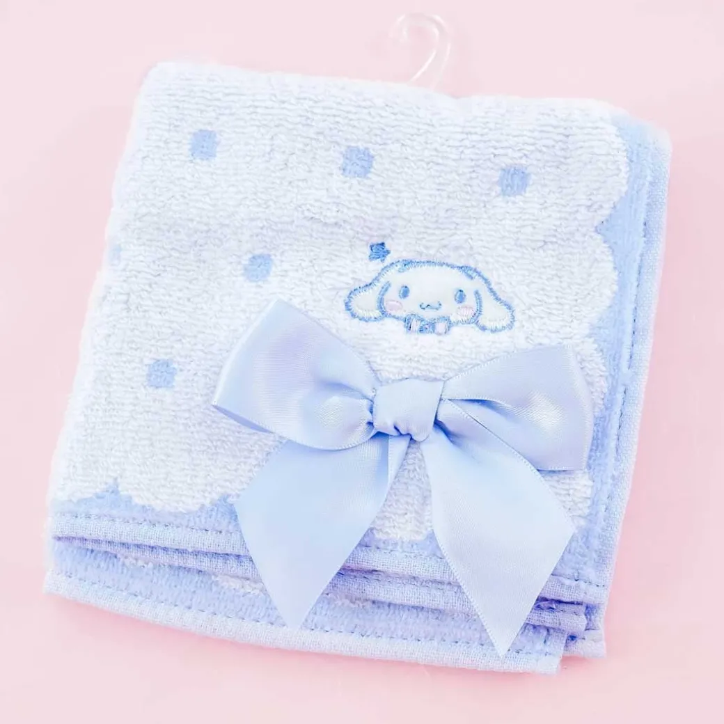 - A kawaii face towel with embroidery of Cinnamoroll and a ribbon decor