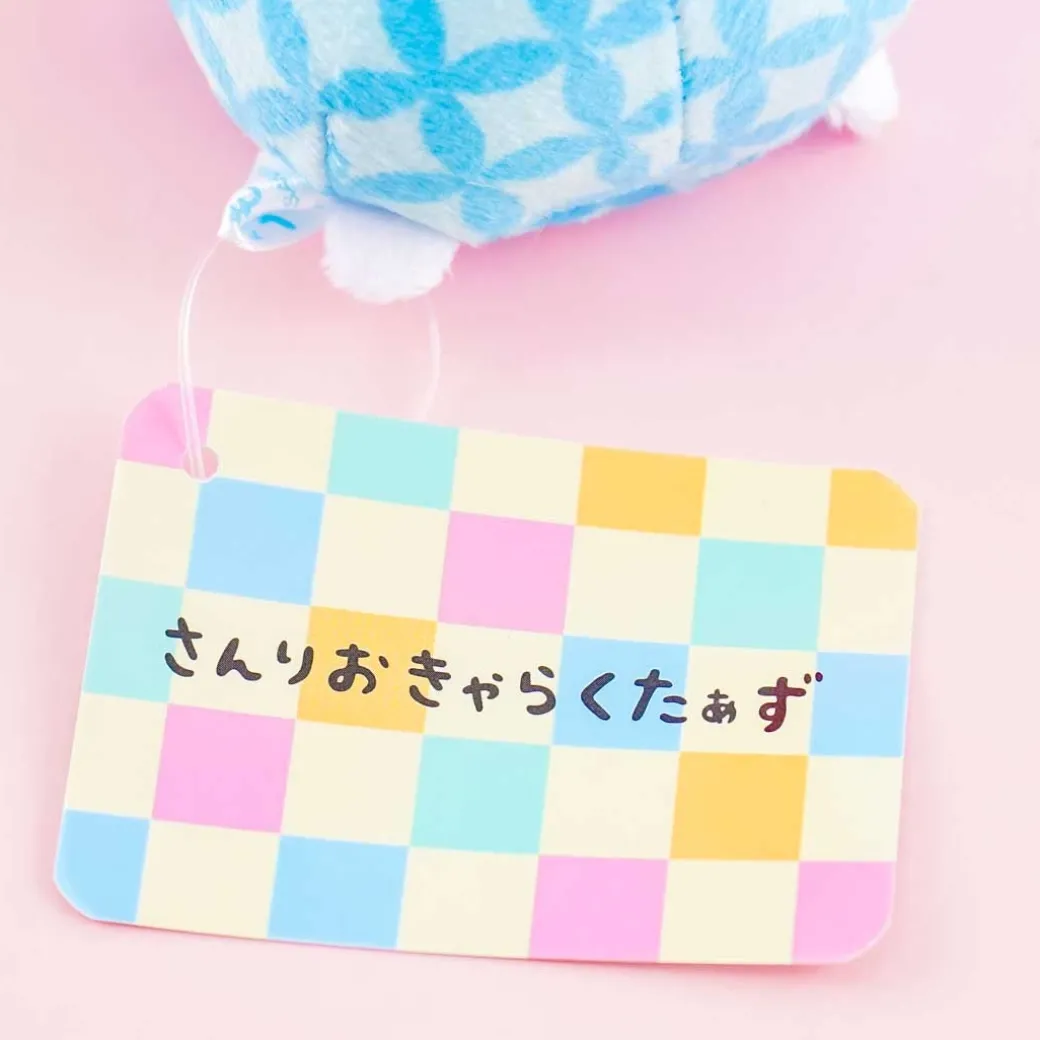 - A cute mini Cinnamoroll bean bag plushie with traditional Japanese patterns