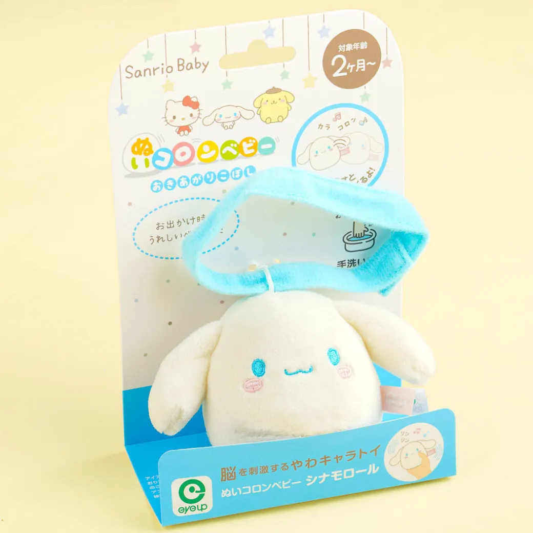 Babies will have fun playing with this super cute medium-sized Cinnamoroll roly-poly plushie that doubles as a rattle! It comes with a velcro belt that can be attached to the baby’s wrist, crib, or stroller.