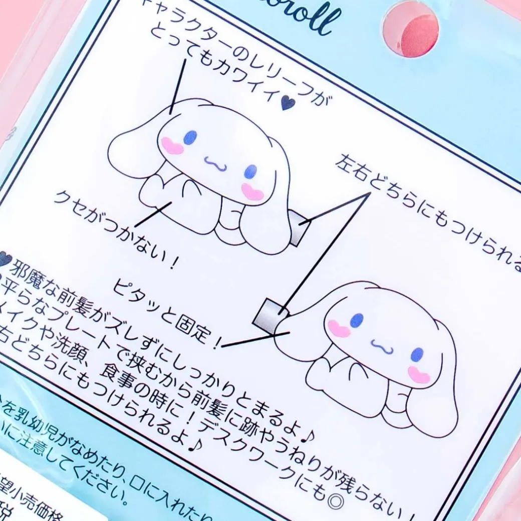 - A kawaii set of hair clips with die-cut designs of Cinnamoroll sitting down