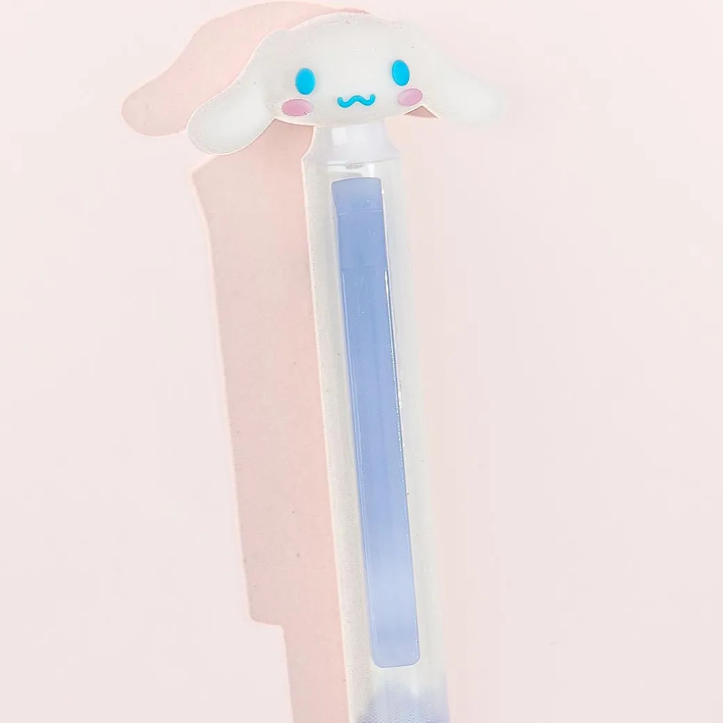 Use this cute click pen to write poems and stories. It showcases a print of Cinnamoroll sitting down! This click pen has a kawaii Cinnamoroll decor.