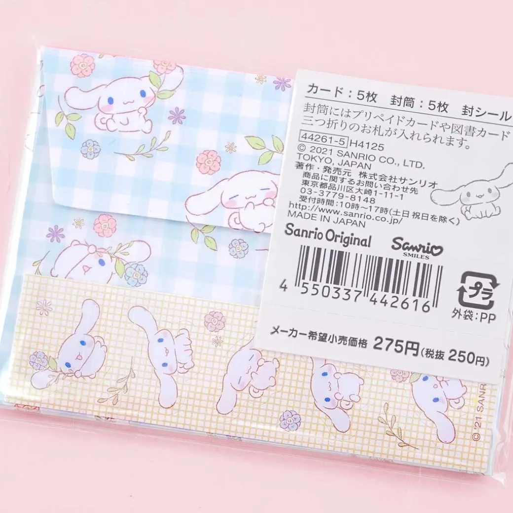 - A super cute message card set with illustrations of Cinnamoroll and spring blooms