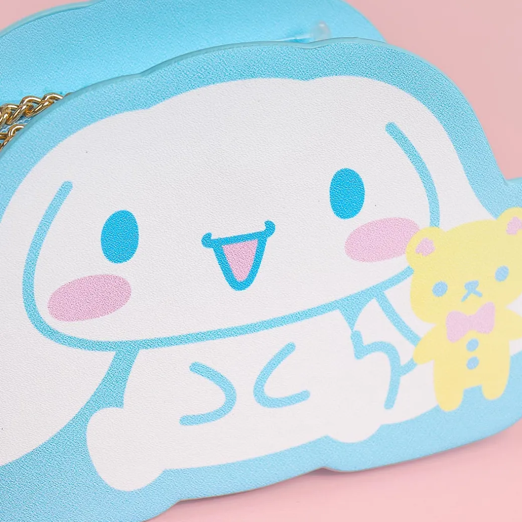This kawaii pouch can stand on its own! You can use it as a decoration and a coin purse. It’s illustrated with a cute die-cut design of Cinnamoroll and Tiny Chum.