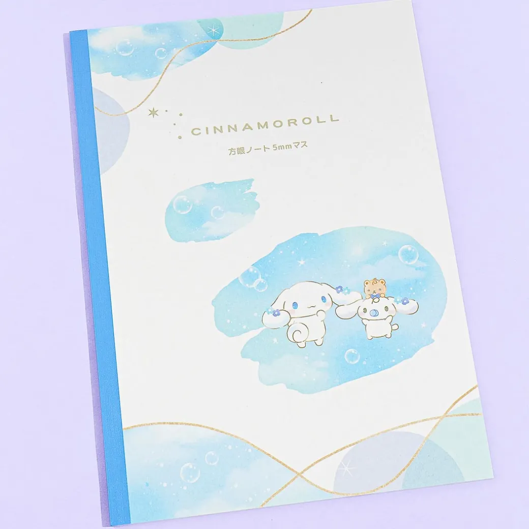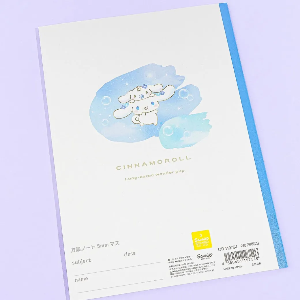 Solve math problems using this kawaii notebook with gridlines! The cover has super cute watercolor-like prints of Cinnamoroll and Milk playing in the clouds.