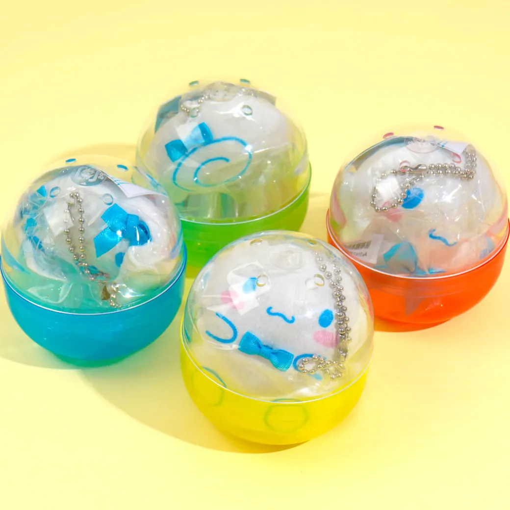 This super cute plush charm features different designs and shapes of Cinnamoroll! It comes in a gachapon capsule. Attach it to your bag or keys using the removable ball chain for a dose of kawaii!