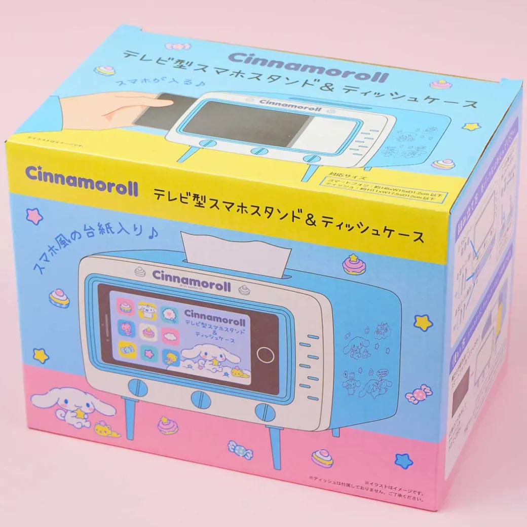 Have your tissues ready when you watch your favorite sad anime with this kawaii TV-shaped tissue case. It comes with a mobile phone holder on the side and features cute prints of Cinnamoroll and Milk with some sweets.