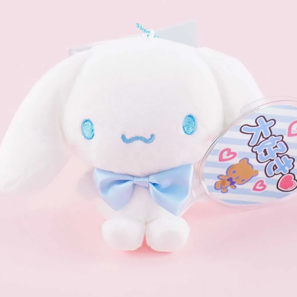 - A kawaii medium-sized Cinnamoroll plushie holding an uchiwa
