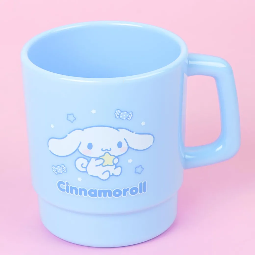 Enjoy your hot soup or cold drink using this cute sky-blue mug! It has a print of Cinnamoroll hugging and wishing on a star! This kawaii cup can also be stacked on top of similar-shaped mugs.
