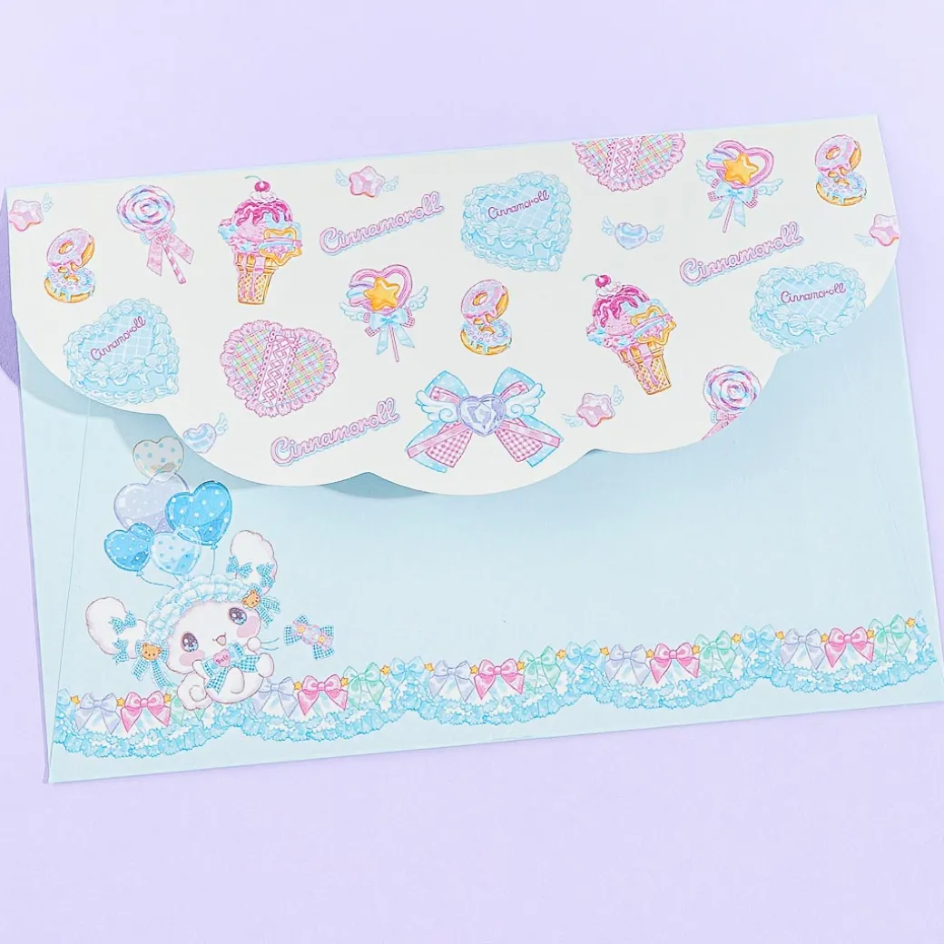 This kawaii letter set is decorated with prints of Cinnamoroll in a Lolita-inspired outfit while surrounded by various sweets!! Be inspired to write messages to your besties using this set! The cute design was specially created in collaboration with Japanese artist, Fumika Amenomori and Sanrio