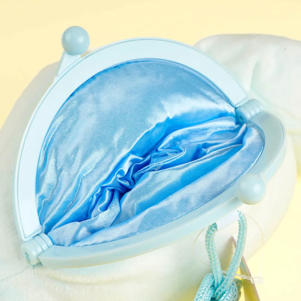 Keep your coins inside this clasp purse shaped like Cinnamoroll’s head! It features a cute and fluffy design with sparkly eyes and star embroideries. This purse comes with a string so you can wear it on your neck. It also has a plastic clasp closure.