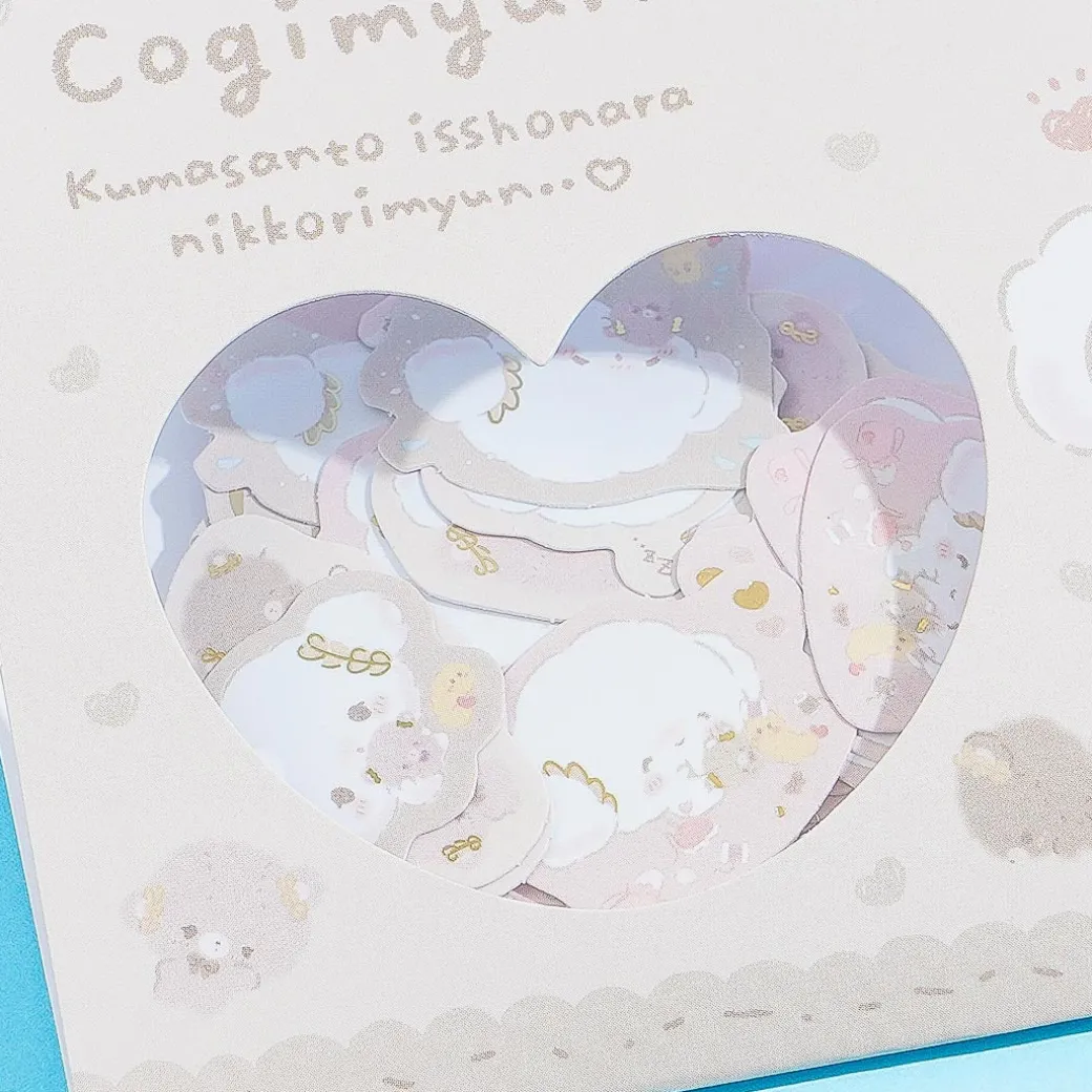 Add a dose of cuteness to your letters using these die-cut stickers! They feature light and kawaii illustrations of Cogimyun playing with a bear. These stickers are accented with gold foil to make the design cuter!