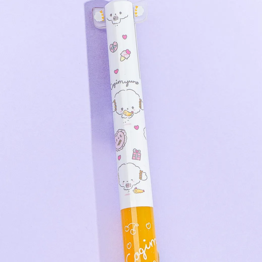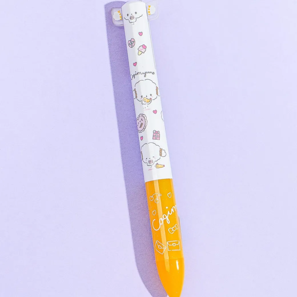 Have fun practicing your calligraphy skills using this cute pen! It has special protruding ears and is decorated with kawaii print of Cogimyun snacking on tempura and other snacks. You can also switch between two ink colors while using the pen!