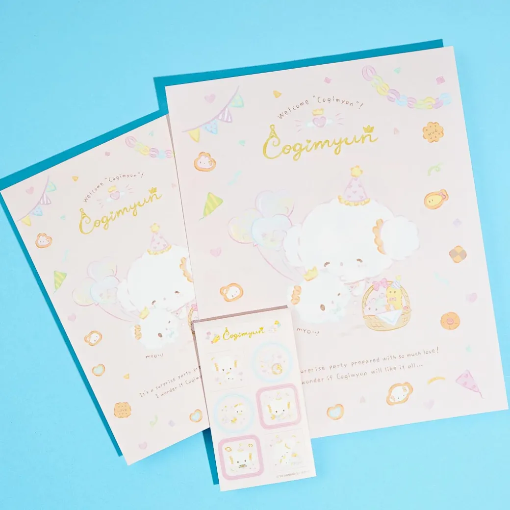 This super cute letter set showcases pastel illustrations of Cogimyun at a surprise party! Use it to write sweet messages to your kawaii buddies.