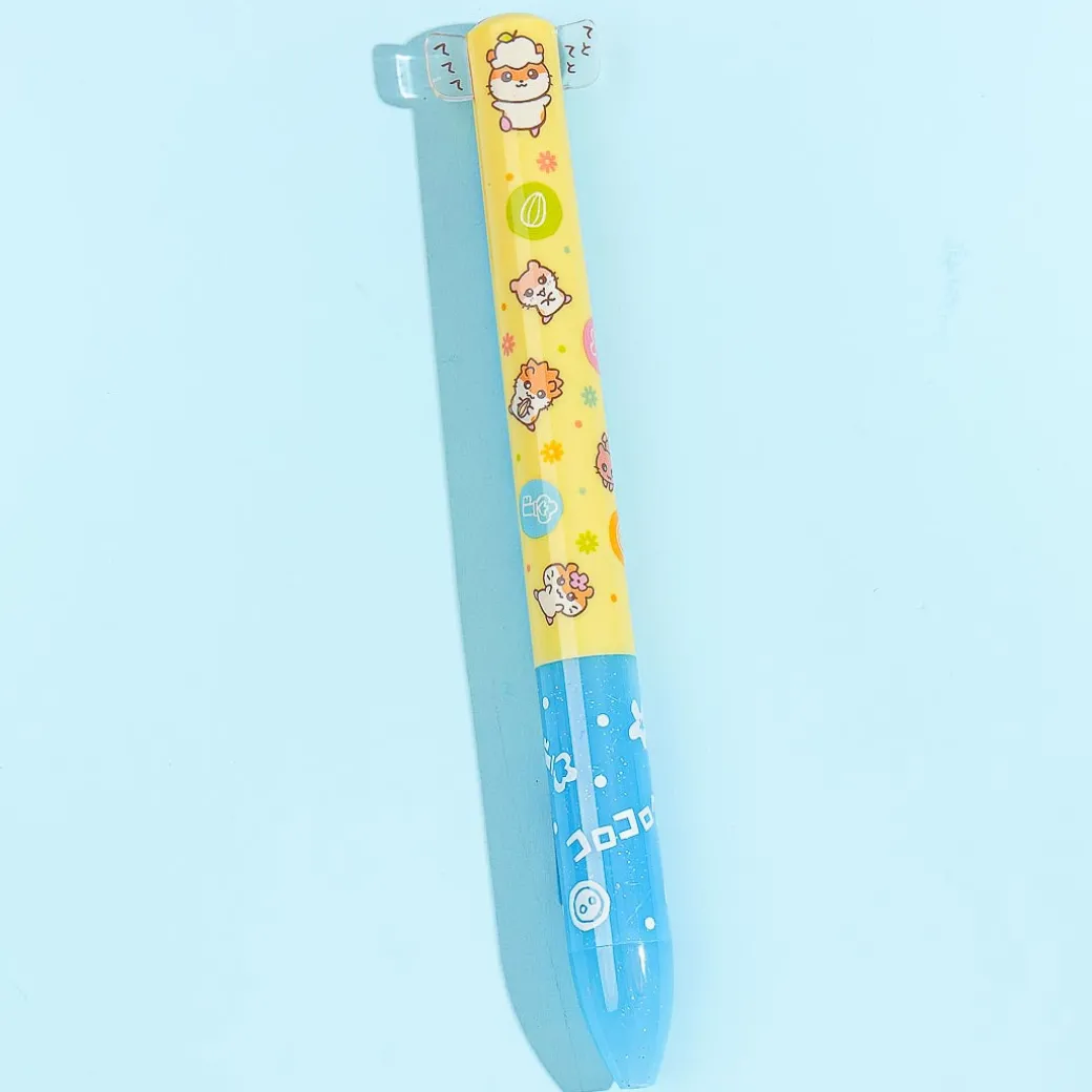 Write letters to your loved ones using this special mimi pen with protruding ears! It has cute prints of Corocorokuririn characters eating sunflower seeds! When in use, you can also switch between two ink colors.
