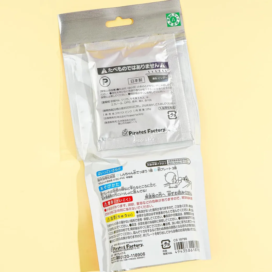 Make bath time more fun with this bath salt pack! It comes with a mini water gun and target plates so you can play while in the tub. This pack features illustrations of the anime Crayon Shin-Chan.