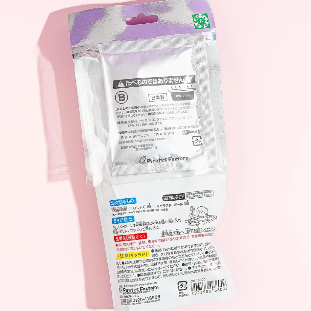 Have fun in the bath with this pack of aquamarine-scented bath salt! It contains a plastic ladle and balls featuring the characters from Crayon Shin-Chan. Use the ladle to scoop up the balls while in the tub!