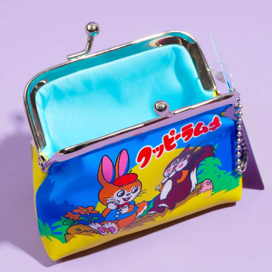 Store your loose change in this super kawaii coin purse. It’s illustrated with the characters from the popular Cuppy Ramune candy! This purse has a metal clasp to keep your coins safe and secure.