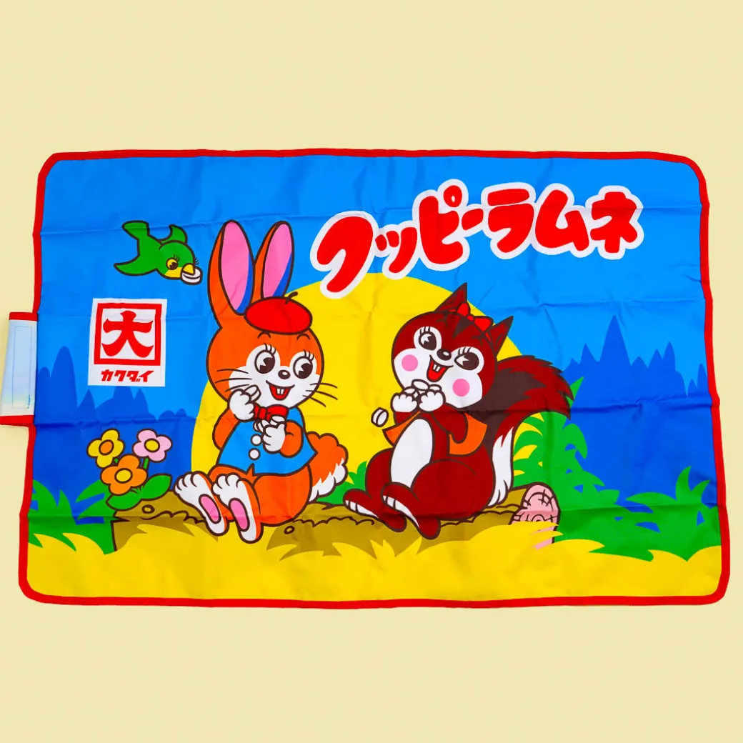 This sitting mat is perfect for school trips, sports days, and picnics! It features a cute print that resembles the packaging of Cuppy Ramune Candy. This mat is foldable so you can easily bring it with you. It’s back-side is also coated with water-resistant material so you can place it on wet ground.