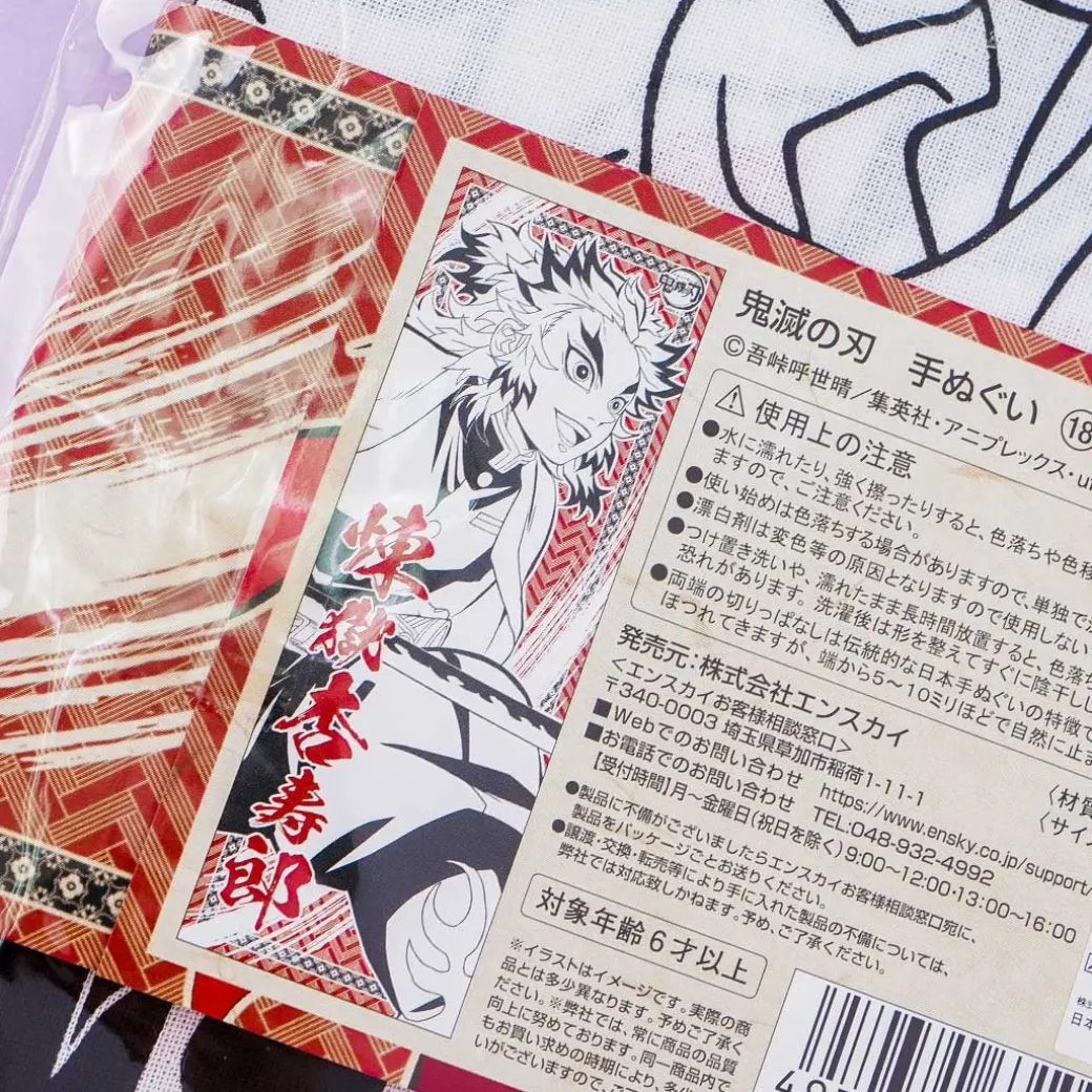 - A cute hand towel featuring a print of Kyojuro Rengoku from Demon Slayer