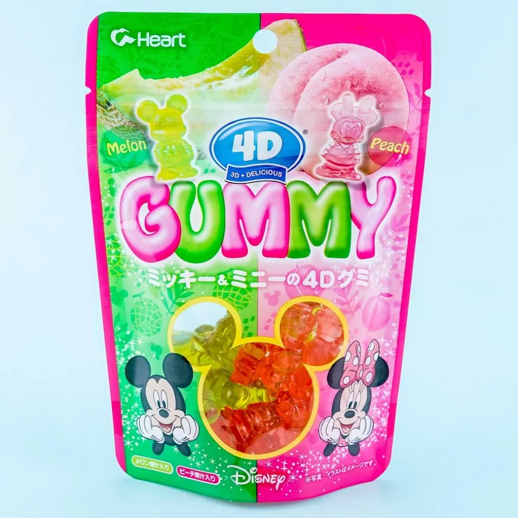 - Features both melon-flavored Mickey and peach-flavored Minnie Mouse gummies