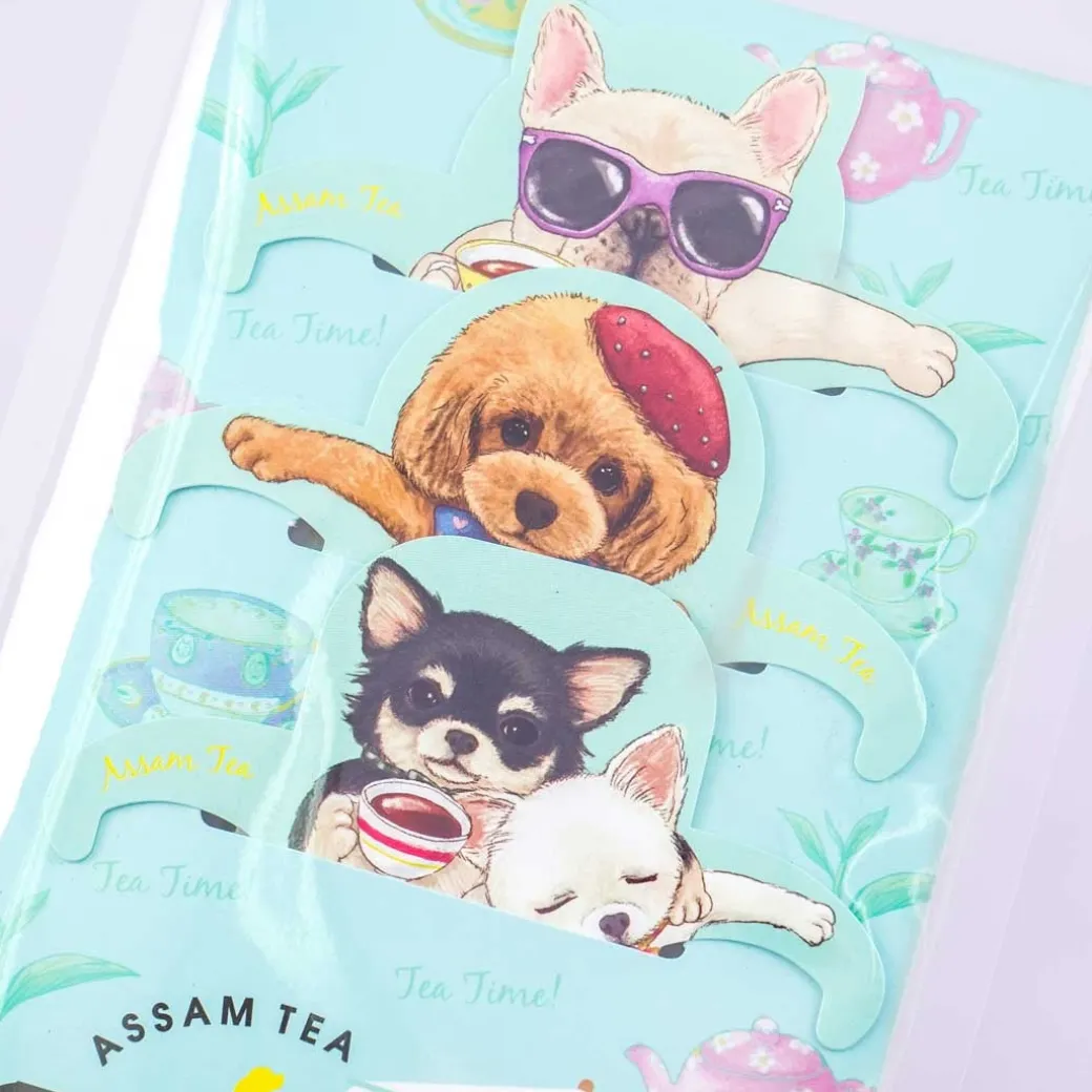 - A pack of Assam black teabags with hooks showcasing cute dogs