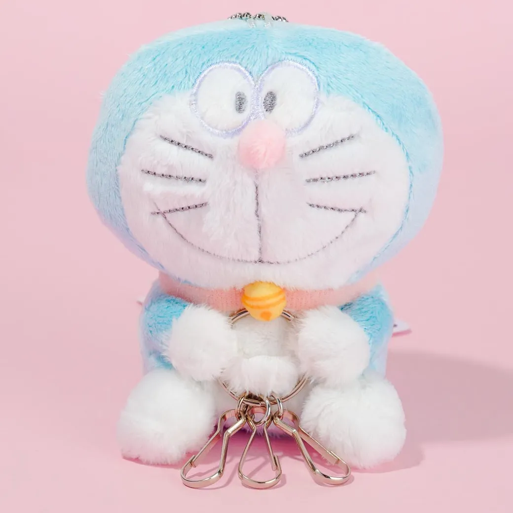 This pastel-colored Doraemon plushie is the perfect travel buddy. It has multiple metal clips in its hands so you can attach keys, charms, and other things! Attach this medium-sized cutie to your favorite bag with its removable ball chain.
