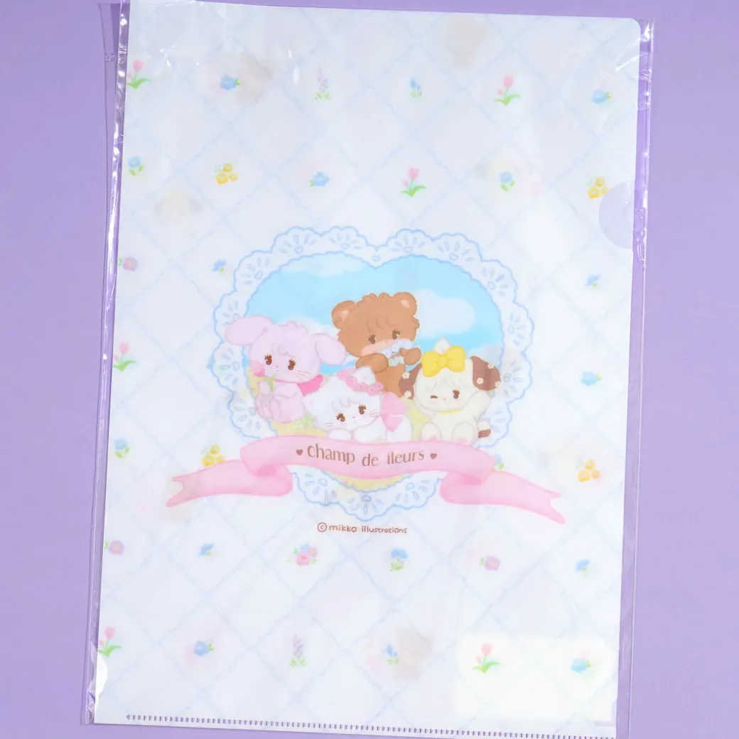 Organize your documents using this super cute clear file folder! It features prints of fluffy animals with colorful flowers. On the cover, it says “Champ de Fleurs,” which means field of flowers!
